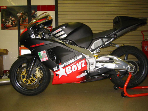 that aprillia, beautiful bike, but would be priceless to see that thing rock it out. It's awesome you guys got that kind of sponsorship.