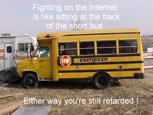 If it's not you rambling on in the chatroom about airplanes, which once you made a mistake and I friendly corrected you. but would not take it, or when you post in threads and damn anybody who does not agree with you down. Or when somebody plays around with you and you run and post a thread about it in the Website forum.