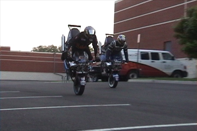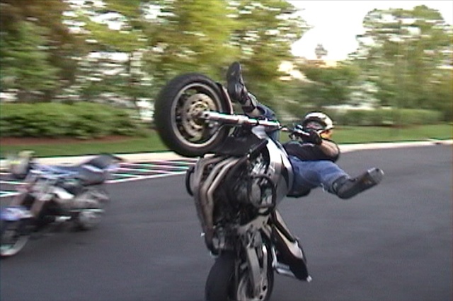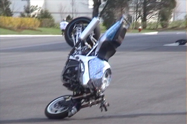 holy crap, how'd you get your bike to do a 180 stoppie all by it's self??? remote control?? jedi force?? big sprockets??? hand brake??? :YEAH