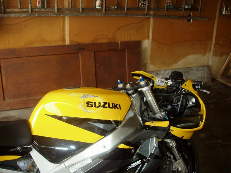 I lent it to my best friend on wednesday and he called me yesterday at work to tell me he crashed in his alley, I said don't trip dude as long as you're ok we can always fix the bike ( thinking, I have a cage should not be that big of a deal) well, I went to look at it today, AND IT IS FUKED!!!! here's the list of everything that got fuked up.