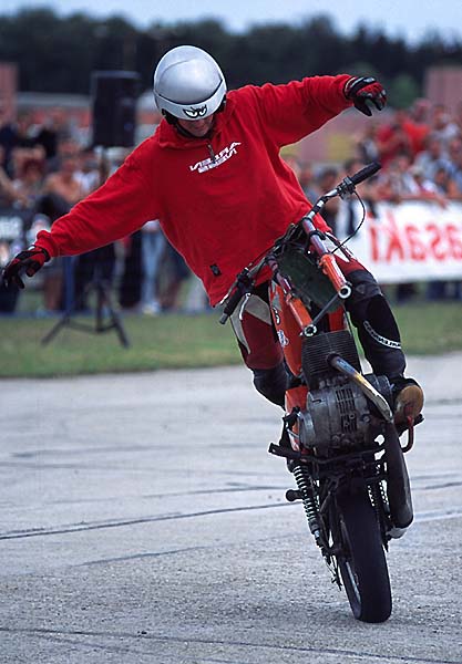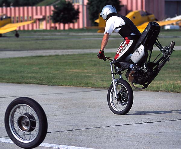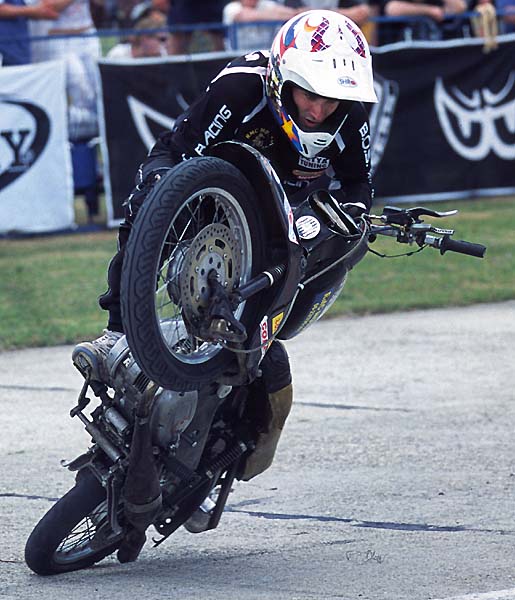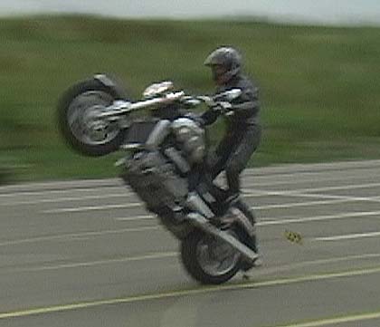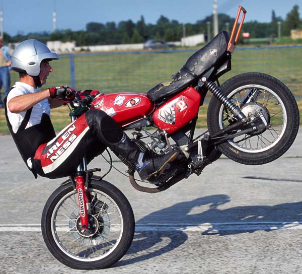 im just flippin through Two wheels only magazine, which is british. these guys stunt crazy bikes. theres a pic of some guy named Jean-Pierre Goy stuntin a BMW doin circles with his foot in the bar. they definately have a different taste over there.