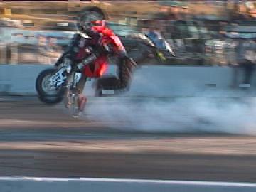 1.) Steve & Cat(Evasive Actions)- Steve in a wheelie while Cat is hanging onto him backwards with her legs not touching the bike at all....it was just plain sick to see