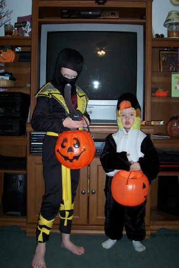Bain is on the left (ninja) and Gage is on the right (penguin).What a handful they are....