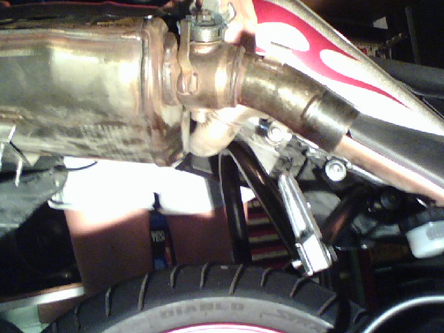 so he sat in the passeger seat and my other buddy pete sat in the riders seat and my buddy who sat in the passenger seat stood up on the rear pegs and bounced the bike as much as he could and it wasn't even close to hitting