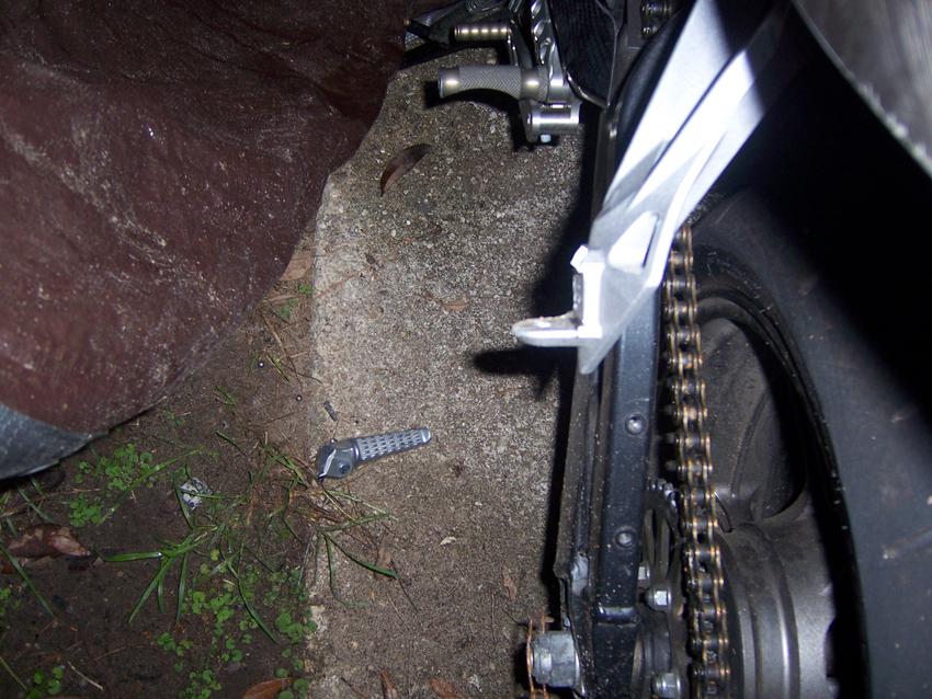 - THE 07 600RR pegs are located 2-1/2 inches lowers 3 inches wider (Then stock)
