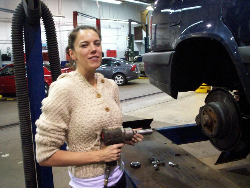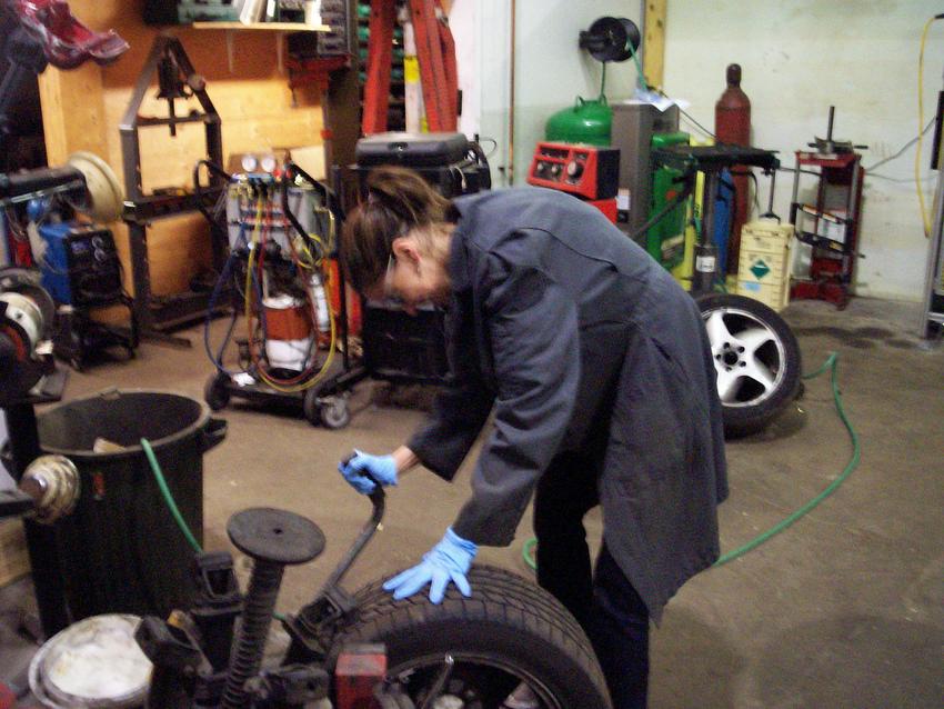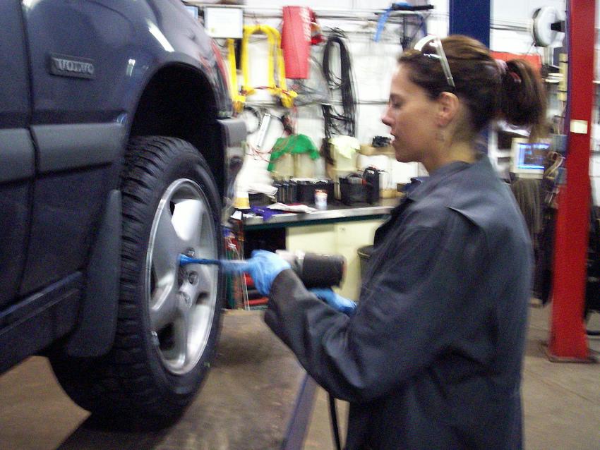 this is what my g.f that you believe durty dicked down was doing this weekend,even puppy came with us!....she loves getting dirty!!!!! put snow tires on the "new to her" Volvo 850 T-5 turbo...if you click on them stock, you get a bigger picture to jack off to brother!