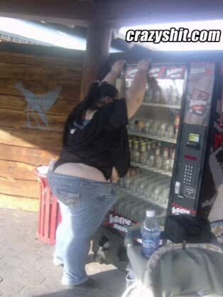 is that fat bitch wearing low cut jeans and a giant g string