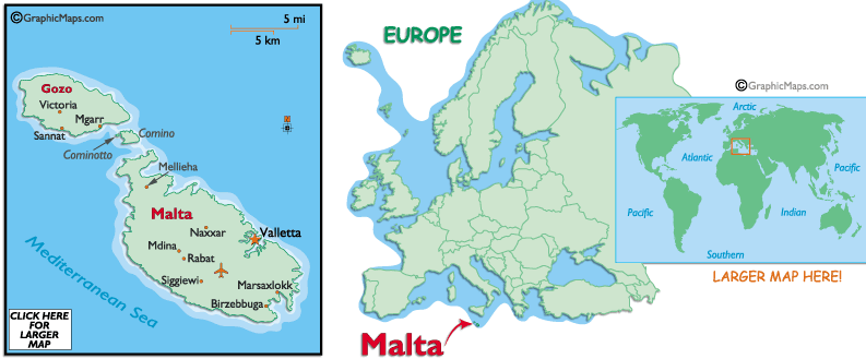 Malta is a tiny tiny little island right beside Italy.