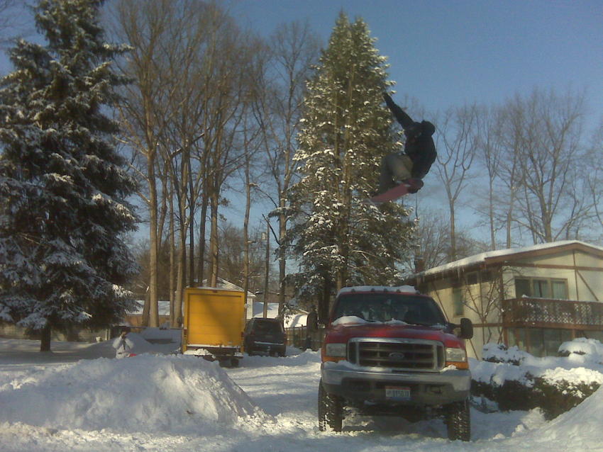 +1 except we used skateboard decks and only had a few inches of snow to work with. One of my friends went off my fmx ramp at full speed. He cleared the whole gap, and landed perfectly on his feet, except without the board lol. No injuries