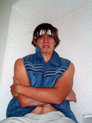 Lets all chip in some cash cause it looks like by ever photo that he forgot to take some clothes from Russia.. he has just white pants and some 1980 looking vest. there i just donated.