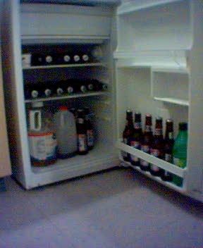 omg, i have that same EXAXT mini fridge, and it looks about the same too, except the beer is CORONA (c'mon who would have anything else???