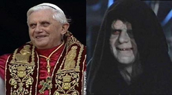 Hahahahahhhahaahahaha, that **** is great. I dont know how people find those comparisons, its just like this one with the New Pope and Star Wars Sith Emperor.