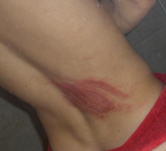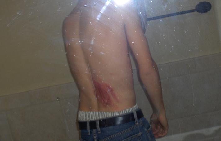 i was up at my friends lake house on texoma. we left at like 12. and im like a mile away from the house at this point on this windy rode havin a little fun but not pushin myself by anymeans. well i was coming into a corner at about 35-40 (the speed limit is 35) and i wasnt even really leanin but the front end washed out and i kinda just went with it.. well i slid off the rode and for about 15 feet through some gravle dirt stuff and then i was finally stopped by a tree but that god i only hit the tree at like 2 mph (back first) and the bike kinda pinned me against the tree. but i got up...(my friends were behind me in the car) and i just like jump up and start freakin out cuz i cant breath.. but i just got the wind knocked out of me...