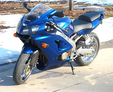 I have a 2001 Kawasaki Ninja ZX6-R for sale. It has a full muzzy system, jeted carbs, +3 rear sprocket, polished frame, chrome rims and custom piant. It has 6,200 miles on it. I'm asking $6800