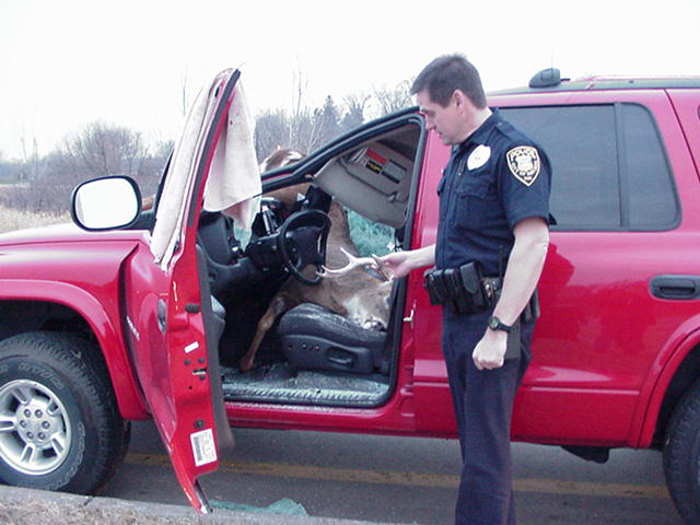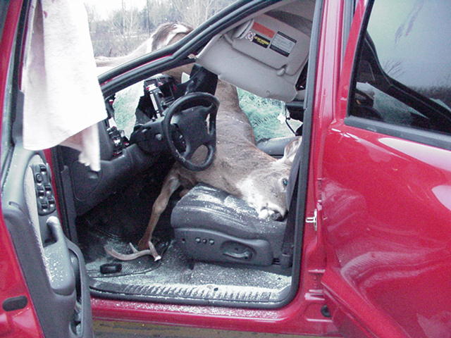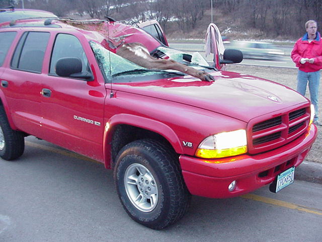 I went bow hunting all year and did get no F'in 8 point. This dewd is going to work with no intensions of hunting and gets a buck. Dam that guys is lucky to be alive. Check it out…a deer hunters dream...1) the buck comes to you 2) it comes pre-dressed 3) and the buck is already on the car…you don't even have to tie the bastard down. I wonder if he kept it?