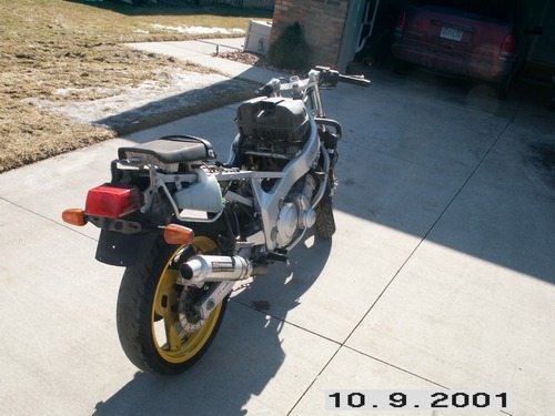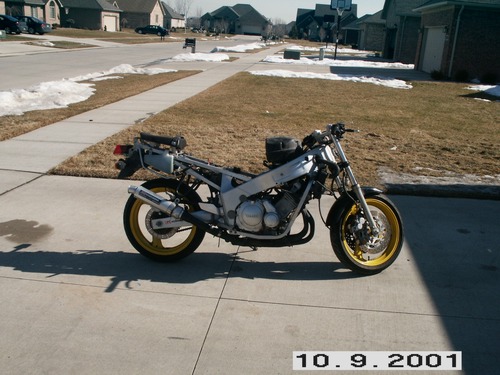 ok guys the bike is in the middle of getting a tune up so it runs good as of right now it needs carb cleaning (in process) plugs (also in process) new ignition and oil change. what i have extra for the bike - tank, seats, gauges, all wirering mirror stay wind scren all nuts and bolts for plastics and headlight assmebly rear fender and all blinkers and mirrors