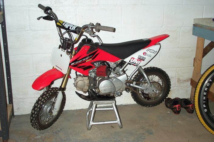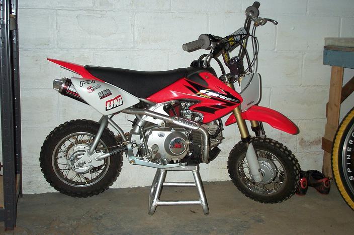 it has the RC Motors 86cc 4-speed manual clutch motor, (8.5HP), ASV breakaway/adjustable clutch lever, BBR big bore exhaust, Kitaco rev-box, BBR tall seat, chain roller, RK gold chain, UNI fliter, BBR skid plate, extra set of Sik 50's "iron cross" graphics, (haven't even been used) Pro-Taper big kit, rear I-Shock, +1" chromoly fork legs, with heavy springs, and i even have the original LOW HOUR honda motor in my basement if you want to rock the stock stuff. also have stock bars, throttle, exhaust, etc. this bike is not beat to ****, plastic is not faded and still looks new. a few scratches here and there, and thats it!! EXCELLENT CONDITION!! lemme' know. i would also consider trading for an smaller LCD TV for home.