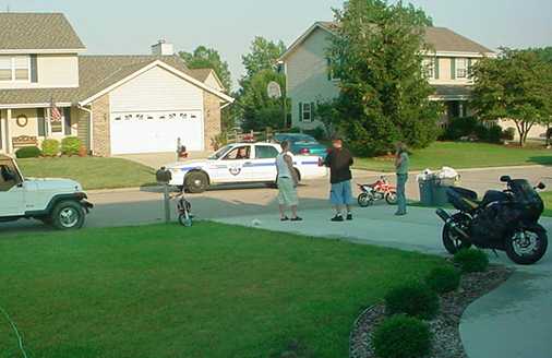 Then I go to our town picnic and this guy confronts us because we are riding sport bikes. He accused us of riding wheelies past his house and said "it is going to come to a screeching halt." It may have been us, but this is a county road - speed limit 55.