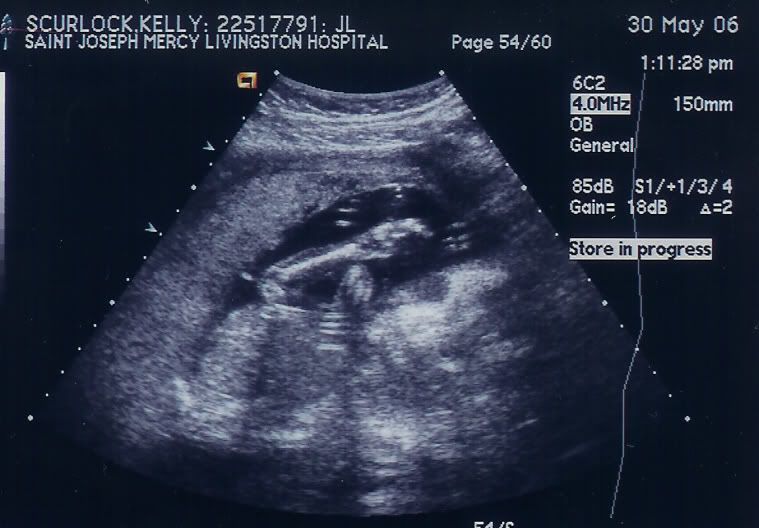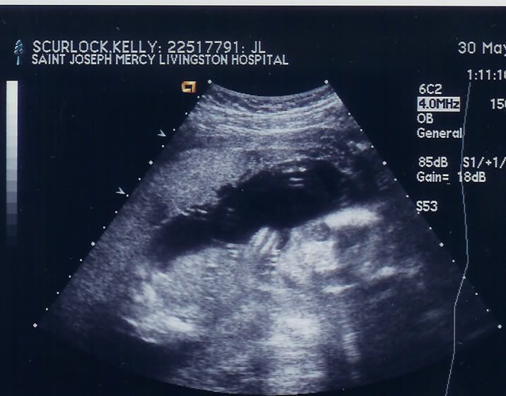 it was pretty cool. they messured all the bones, and i saw its brain....here's the ultrasound pics....he he he its waving in one of them...i think it looks like a lil alien.kelly