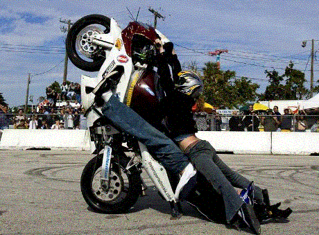 This is my good buddy tom and his wife amy, Bustin their new trick at cyclepalooza
