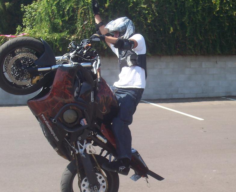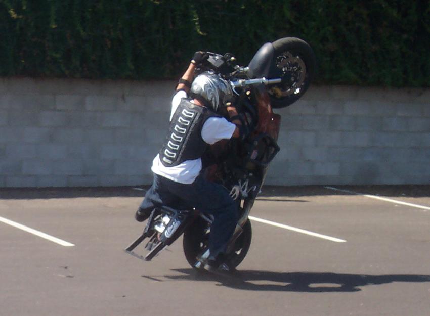 wheres the upper at??? also runnig behind hte bike, turn ur idle down and flip a SS at about 10 mph jump off whe u feel it start to float backwards and you kno its guan flip, run push and jump back on....for the luv of god dont use urhb for that trick