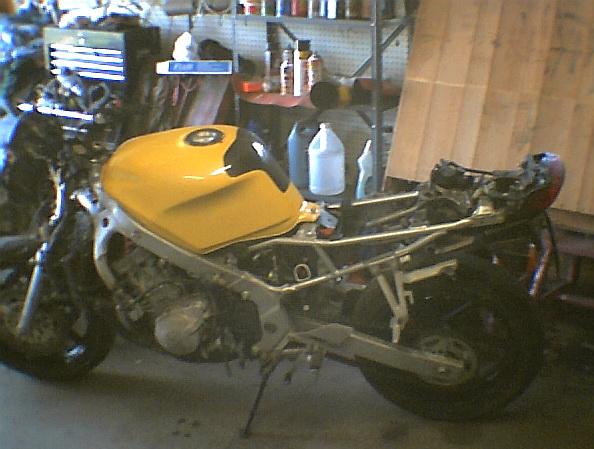it wasn't that bad, i've been working on it for about 7 weeks or so. I totally rebuilt the forks and steering head, so it should be good to go now. i hope this makes a great stuntbike....