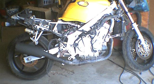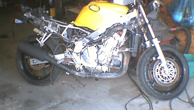 i jusp pieced together a 98 f3, and made a stunter out of it....it had a broken subframe, and missing all the plastic, and exhaust, pegs, seat, wireing, and few other things....here it is now....