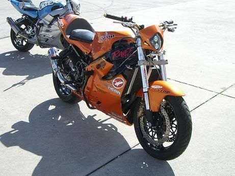haha... mine was about 10 mins.. drunk.... i pounded it off the bike (it was previously dented, just poorly done) and i actually mad it too deep up front.. so i couldn't get it to fit over the airbox, i had to pound it from underneath.. but i love it... now i gotta figure out how to do no handed spreaders