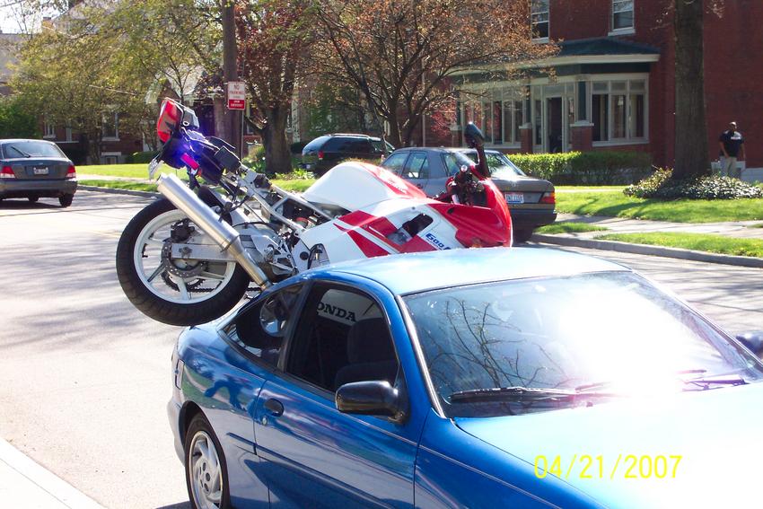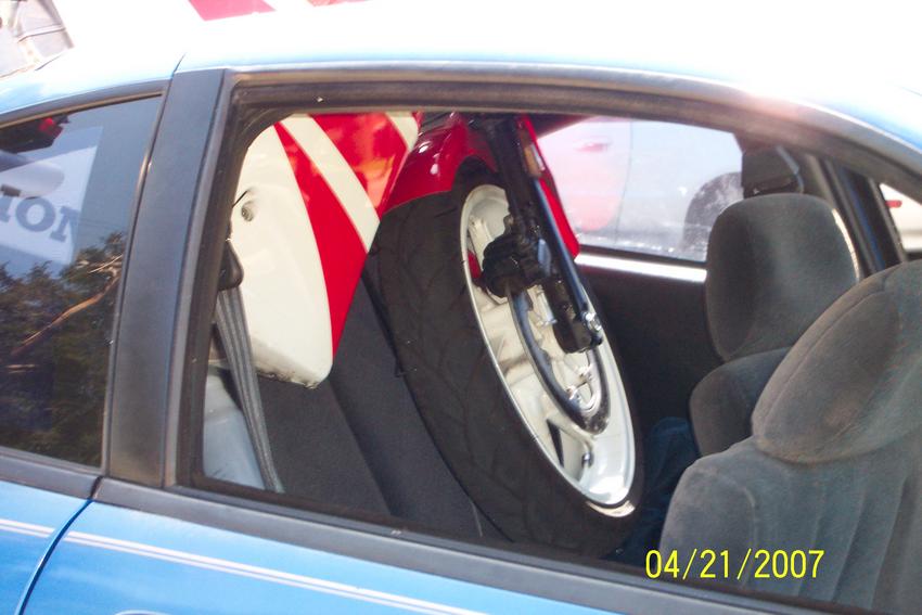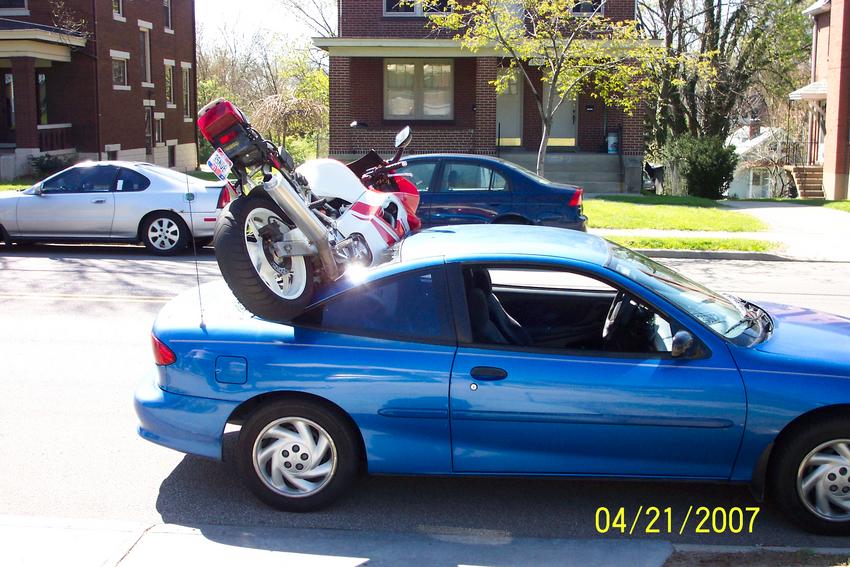 im pretty sure if a bike comes slammin down on ur rear shield, the sides or fame of ur car isnt guna be that ****** crisp.