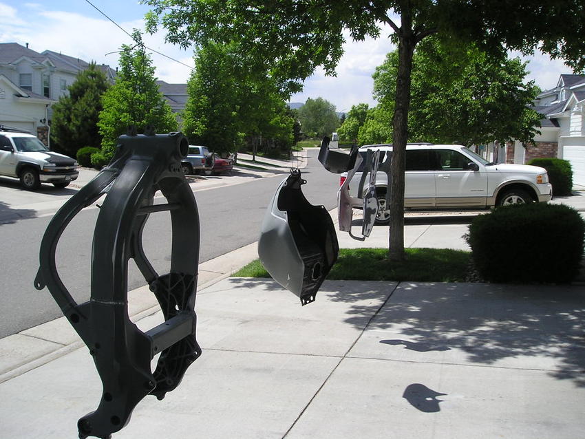 I'll have it all back together most likely by next weekend. It's just a stunt bike so it'll look decent, nothing to special but WAY better than what my stunt bike used to look like!