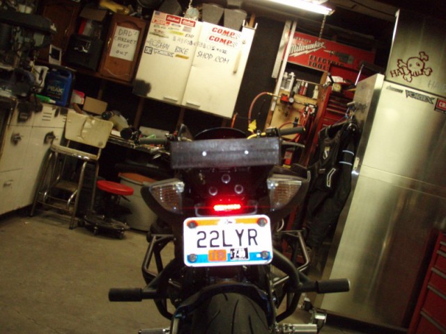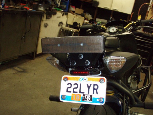 I flipped it around so I dont magically somehow kick it and have it break off. Plus it looks ugly sitting forward with out fairings to hide it, so i flipped it...
