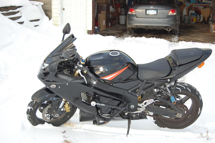 here is my 04 gsxr 600. just finished up the clear coat and put it back together. my first bike paint job ever. had some nasty deep scratches and holes from rocks to get rid off lol.