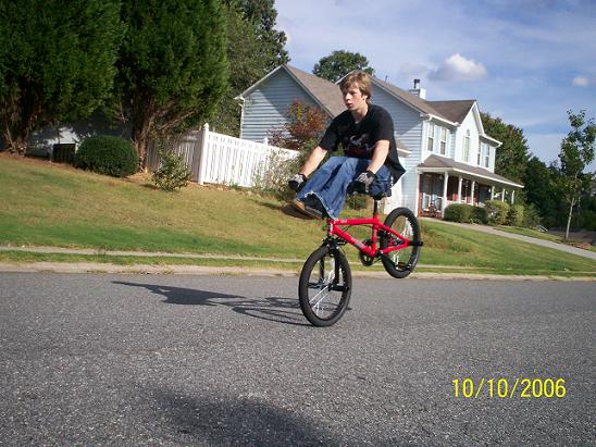 Ha! No but I go into town and wheelie up and down the sidewalks and cross walks, My one friend is a great rider I don't know what he was thinking he ran right into a parked car. But he got up and rode away? I was like WTF??