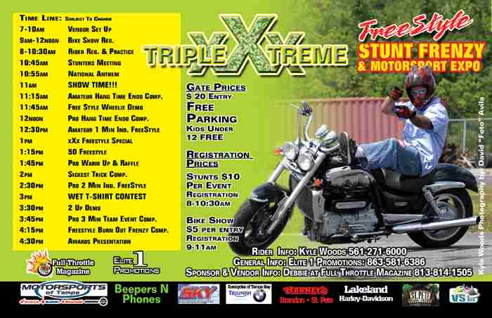 Events? 3 min freestyle, Team event, Sickest trick, longest stoppie & burnout course........ Can you hang?