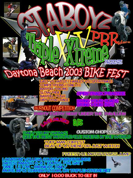 I already have the StaryBoyz/Triple X event in Daytona hooked up on the STUNTERS.com website. Who wants to throw some dollars my way for advertising, LOL...