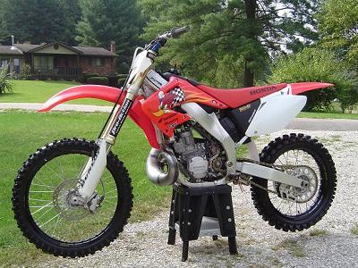 I am going to sell my 03 CR 250. Before it was ever ridden it was taken apart and the motor and carb were sent to TMR (Tom Morgan Racing). He is one of the most respected motocross and supercross engine builders in the country. The complete motor, head, and carb were all built and flowed. This bike is a flawless performer and one that is tuned and starts perfect every time.The suspension was sent to Pro Action and the forks were fully done as well as a new rear shock and spring. Other items include: Renthal limited red/blue oversized bars, Tag triple clamps, Aftermarket clutch adjuster, Renthal grips, V-force reed cage, FMF "works" pipe and silencer, Barnett clutch basket, Black Excel rims, new Michelin tires, Renthal sprockets, DID chain, Twin Air Filter, Honda sticker kit and seat cover, Vented front number plate, etc. The bike is super clean and has been ridden maybe 8 times. I have an extra Doma pipe and silencer that was $500 and other extras like bike stand & motorcross pants, that I can also sell with the bike. There is easily over 8k in the bike and gear. I am asking $6,500
