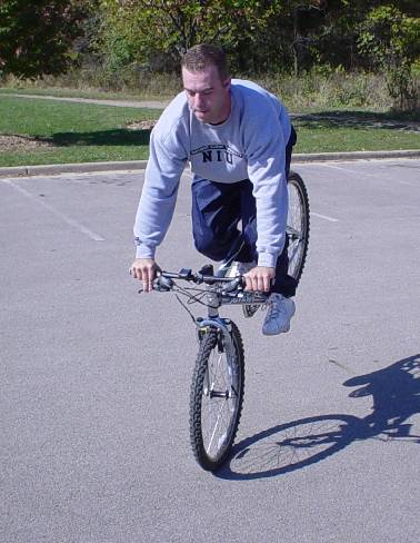 Lol, you all crack me up! Come over to my house, I got all the stunt toys, 2 bmx bikes, mountain bike, scooter, and a pogo stick! I stunt the hell out of all in front of my house all the time....hee hee! You both need to quit being sally's and buy your bikes back...lol!:D
