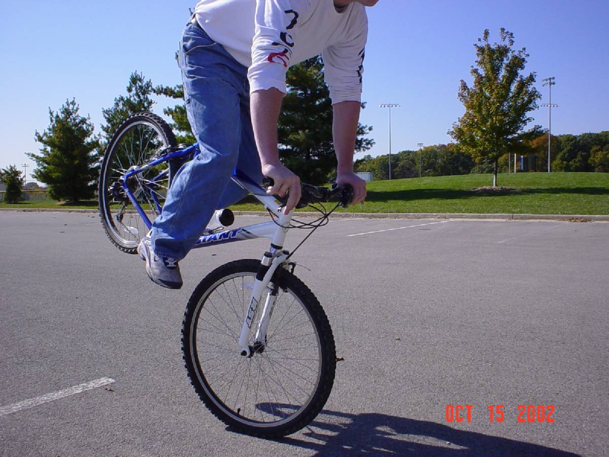 yeah...yeah...I dropped my **** immediately after that first pic. I balled up hard once cuz I thought I was gonna be a big pimp and roll one out from a good speed, well...I didn't. I'm gettin better fast though, that was the first time I rode my mountain bike. These things are fun as hell, if anyone else wants to go hit some trails or whatever, let me or blake know! Lata