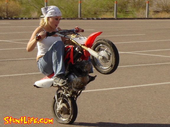 SMALL CARS SUCK. I PUT MINE IN MY ECLIPSE WHEN I HAVE TO, BUT IM LUCKY CAUSE I LIVE RIGHT NEXT TO SOME POWERLINES WITH DECENT TRAILS. TOO BAD NONE OF YOU GIRLS LIVE IN FL CAUSE I WISH I HAD SOME PEOPLE TO PRACTICE WITH. I JUST LEARNED 2ND GEAR WHEELIES AND NOW IM JUST TRYIN TO FIND THAT BALANCE POINT.