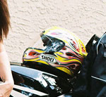 I'm looking into a new helmet as my current one is nicked and cracked to hell. I was considering the Shoei RF1000 Nerve or X11 or Arai rx7- but I wanna hear what you girls have chosen and your own experiences. There are a couple things that bother me that guys can't relate to: the heaviness of some helmets & you really can't tell by going to the store and wearing it once, wind rattle, a design that accomodates to our ponytails and/or knotting longer hair (I know that sounds stupid) and better graphics....
