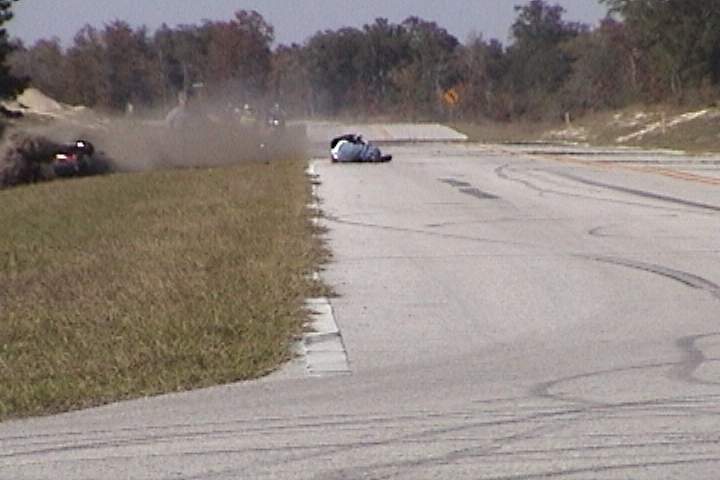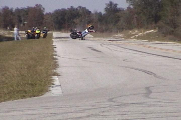 This was on 1/1/02. My first streetbike crash. I was standing on the seat and came down from a wheelie into a tankslapper.
