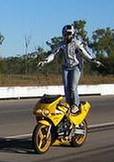 but with that slapper, which slams your elbows, and forearms into the tank..... brings out the term "tank slapper".oh yeah, and nothing is better than a ***** riding her bike in heels... and thong hanging out:YEAH its even better to see the chick doing a standup!