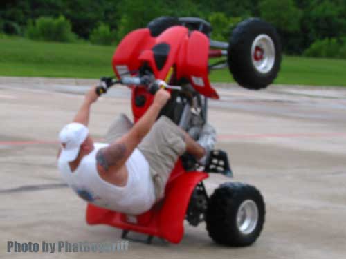 Hey sh*t head!! If you go to www.fmxquads.com you can see that Bill really can wheelie!!!!!