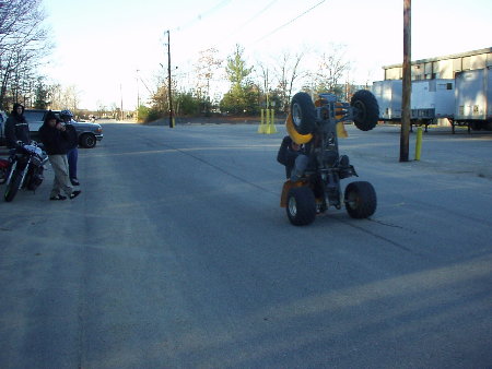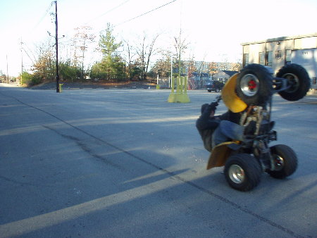cool,i used to have 2 honda 250rs,a 86 and a 88,but when i had them i never did try and stunt them,the only atv ive stunted is the new 2003 kawaski 400,them 4 strokes are the ****,def loft the wheel alot simpler then the old 2 strokes,but im gonna pick it up today and ill post a picture