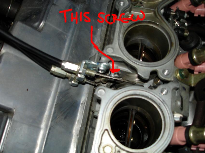 Alright so I have a 04 600rr and have it stripped down to the throttle bodies waiting to put in my second cable. It looks like the set screw is in a different position than the one shown in the pic of the f4i. I see 2 screws above my stock idle cable one is painted white im guessing these are the set screws which one should I remove.