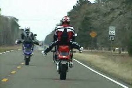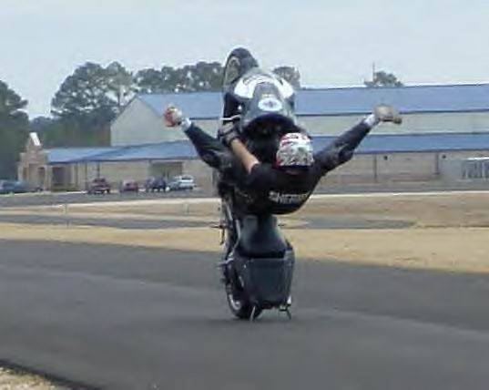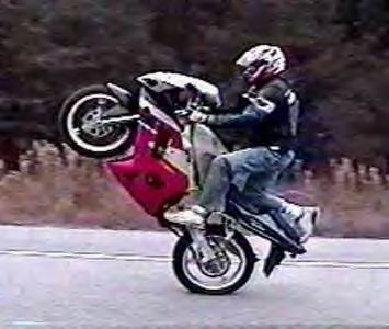 'round here we even have some guys that stand with their right foot on the left peg and stick their left foot out thinkin that's a cool trick hahahahaha! Can't forget the famous motor-rev and the tank ride! way too cool...hahahhahahahaha!