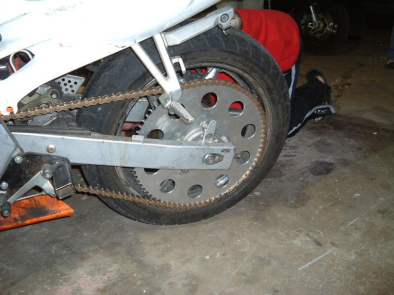 theres a rim under there lol.. i just put a 50 tooth sprocket with a -1front and what a difference.. i take it u dont ever ride on the street? mine screams in 6th gear not sure how fast i am going but it says 86 and feels like 55 or 60 lol and is at about 5.5 grand on the tach.. let us know if u street that or just put to your spot..
