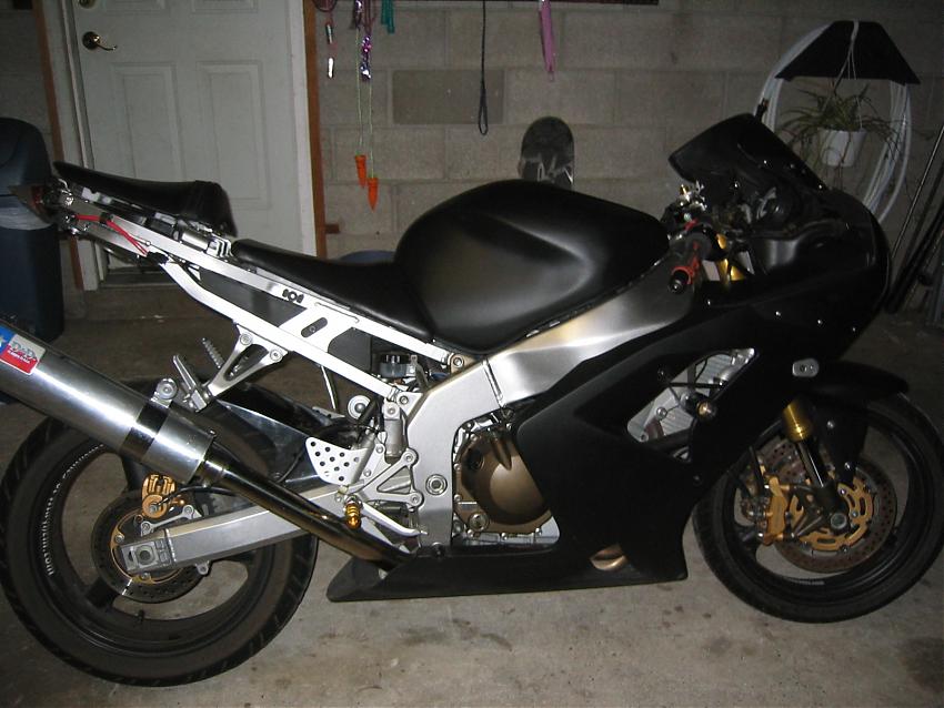 The bike is my buddies bike. He is the first owner. he rode the streets with it and did an occasional sit down power wheelie with it. Then he decided he wanted to stunt. So he made is SF and tried for about 2 weeks. Dropped it a few times (had a home made cage on it) and decided to stop trying. He put it back to stock Minus the tail b/c he broke it. He then painted it flat black to be gangster. (i have no idea why) So now he bought a quad to ride in the dirt and his wife said he has to sell this. Only has 8K miles. I know he has a SF light and a chain and sprocket to go with it. I think the stock exhaust too. has a d & d on it now.