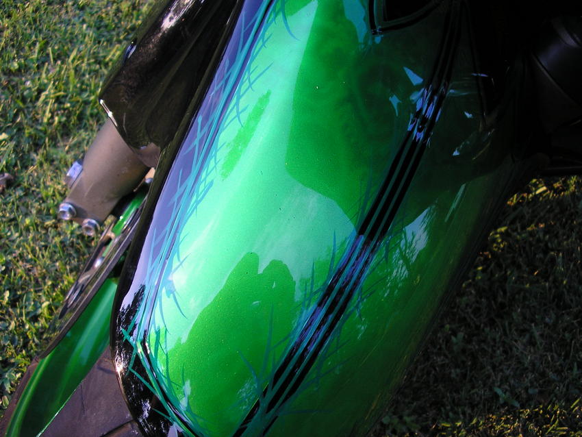 Oh, it also has house of colors green with some sick ghost skulls in the front fendor.