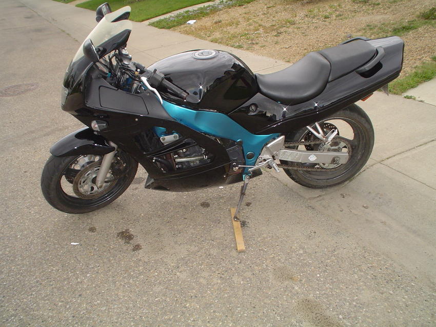 95 rf600r black, with stock green frame, new chain and sprockets rear tire, paint, brakes, plugs, after market pipe, good bike for a starter! if interested call me at 471-2627